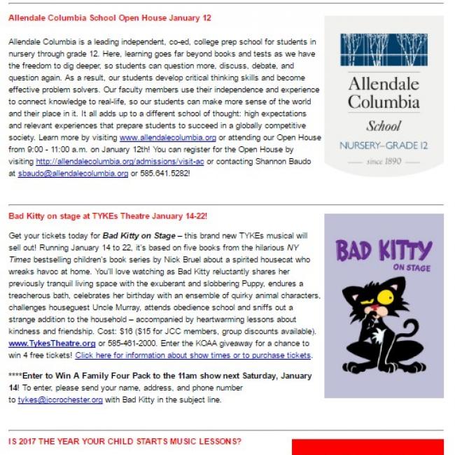 Each Thursday morning, we send an e-newsletter to thousands of parents in each local area. Those who are providing events, products, or services to our market can have a paragraph + graphic in this newsletter (subject to editorial approval) for $100. You can order a paragraph at any time "a la carte" by clicking here to access the paragraph order form. Usually, though, paragraphs are ordered within the context of a larger visibility package.